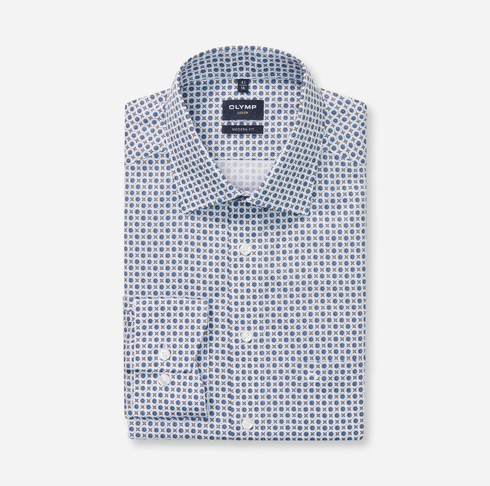 New collection colours – fresh look. The floral print design on this close-fitting OLYMP Luxor modern fit shirt comes in innovative seasonal key colours. The sporty New Kent collar goes perfectly with the slim cut. The 100 percent cotton fabric is naturally stretchy, breathable, skin-friendly and non-iron.