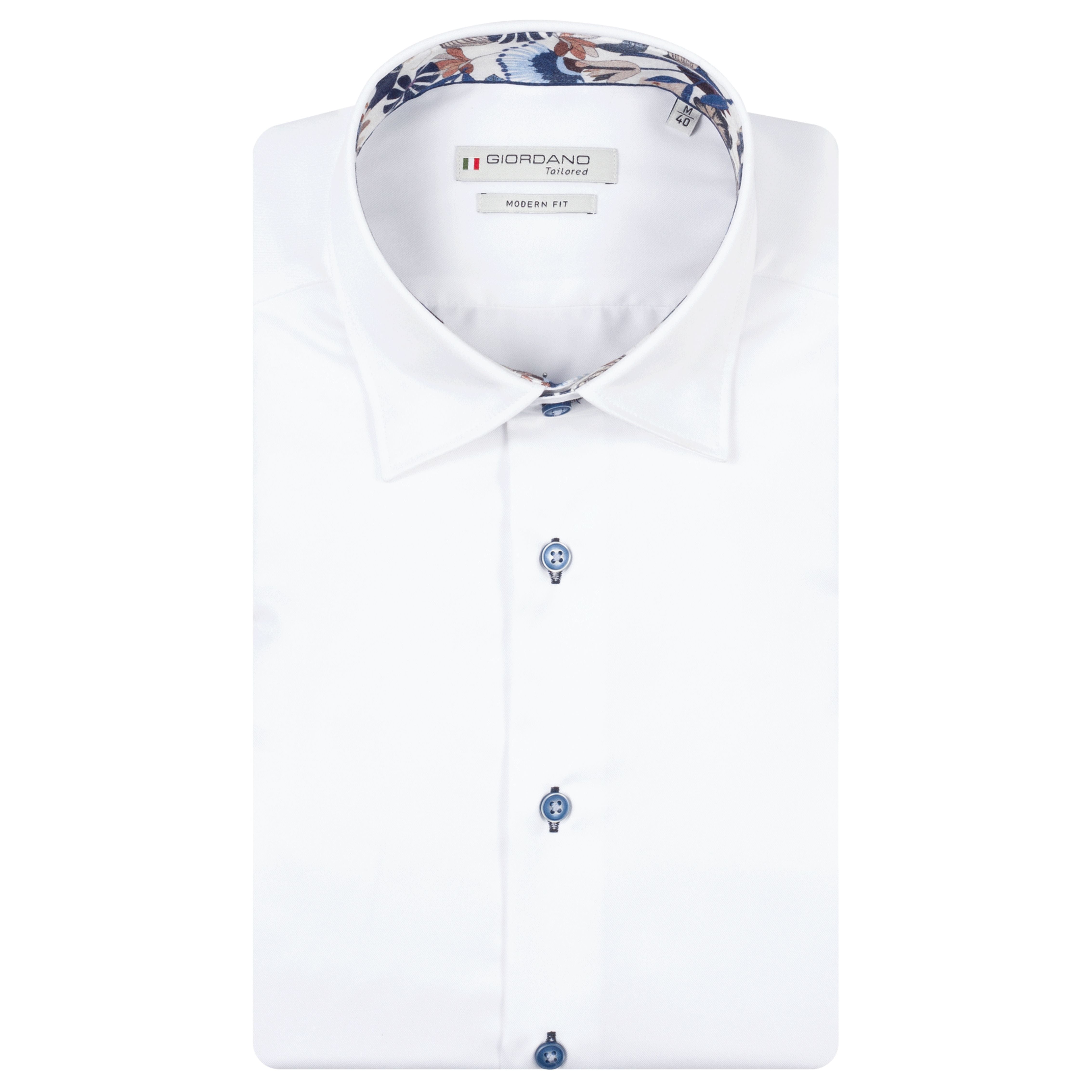 Giordano regular long sleeve shirt in White with contrasting  pattern inside collar  and Cuff , cotton rich fabric