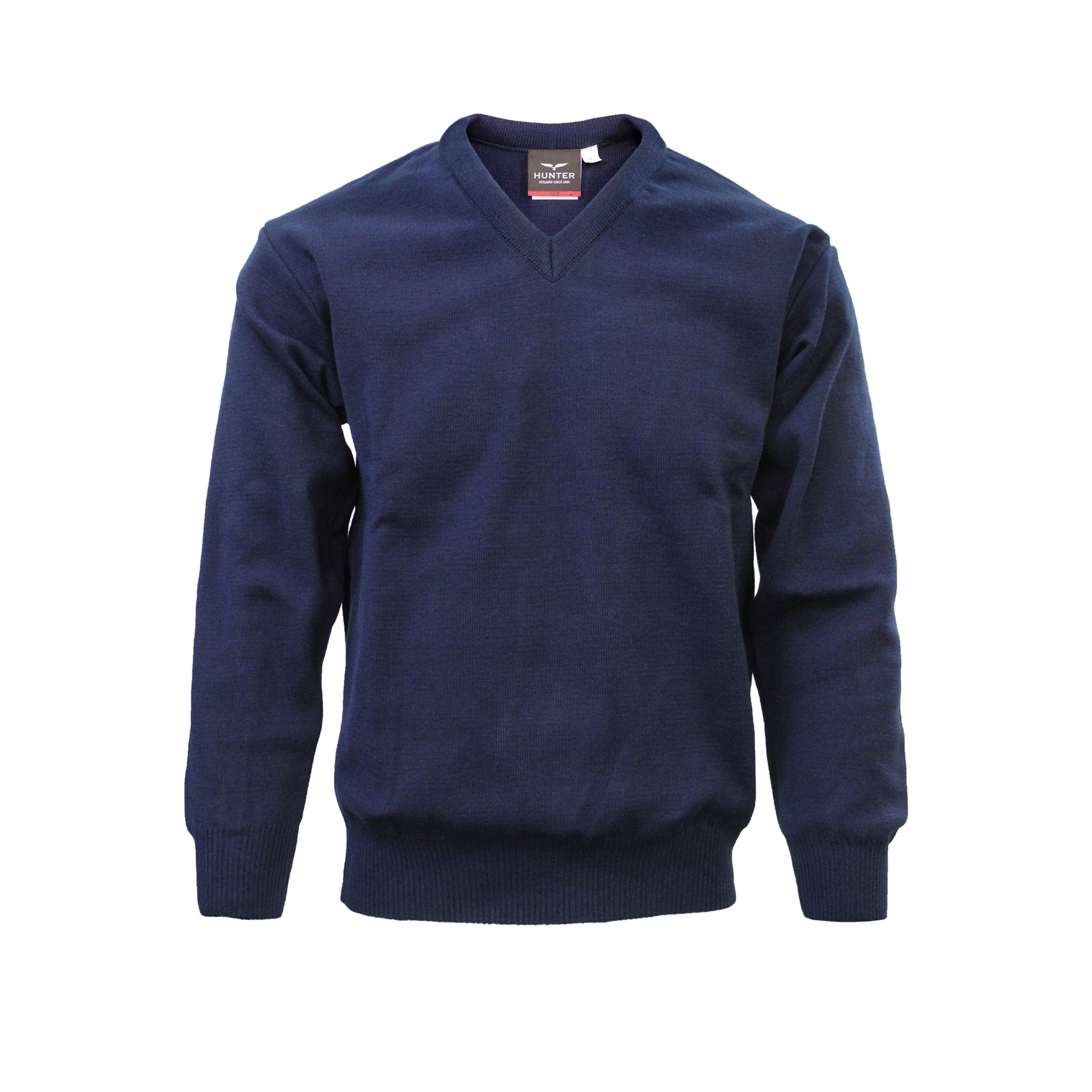 Plain navy v-neck jumper. Made in Ireland. Machine washable 30 degrees celsius. Do not iron & do not tumble dry.