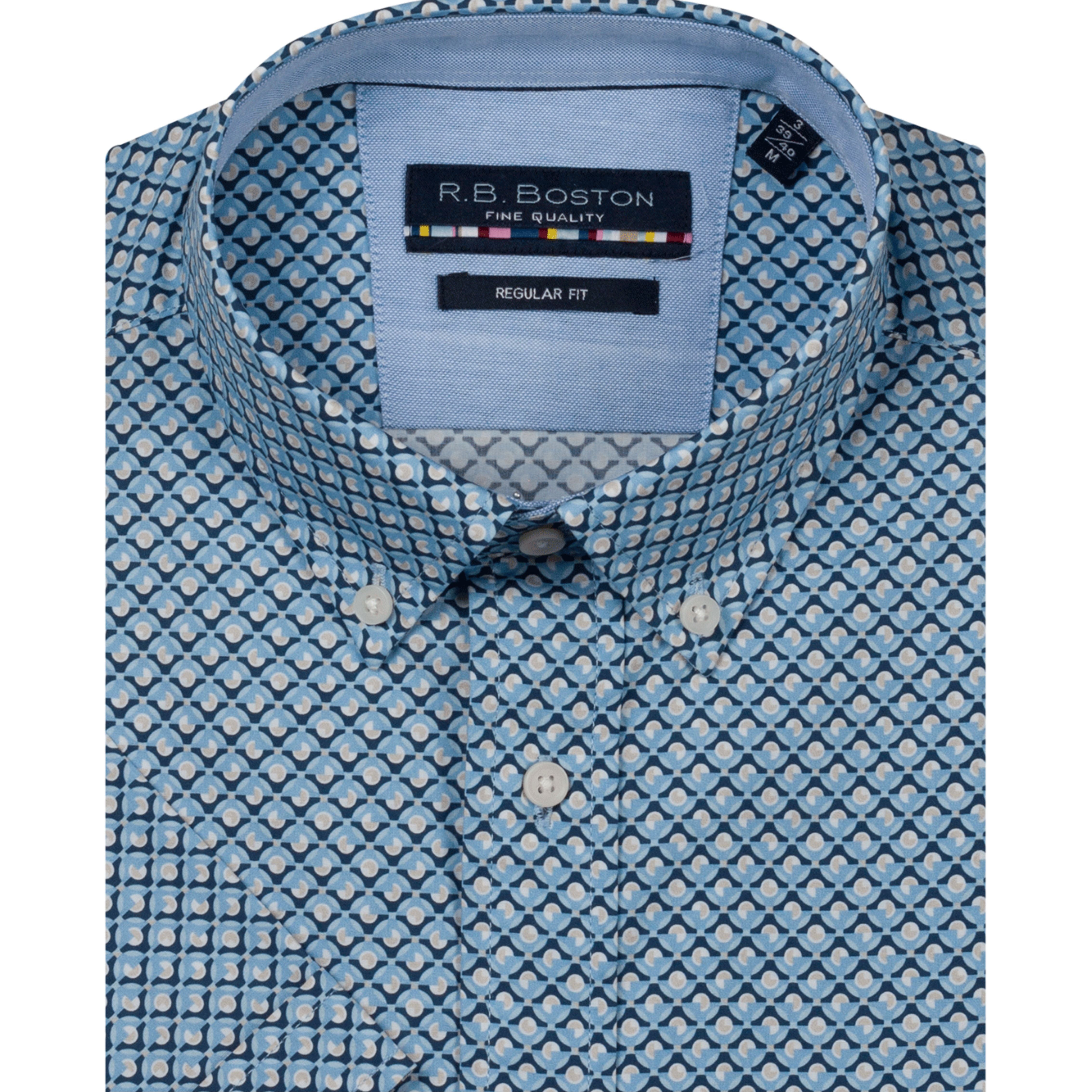 Crafted from 100% cotton, this R.B Boston short sleeve shirt combines comfort with timeless style. The classic Blue/Beige Print works effortlessly with your everyday wardrobe, whether you're dressing for the office or casual outings. The breathable fabric keeps you cool throughout the day, while the quality construction ensures lasting wear. A versatile essential that deserves a place in every man's collection.